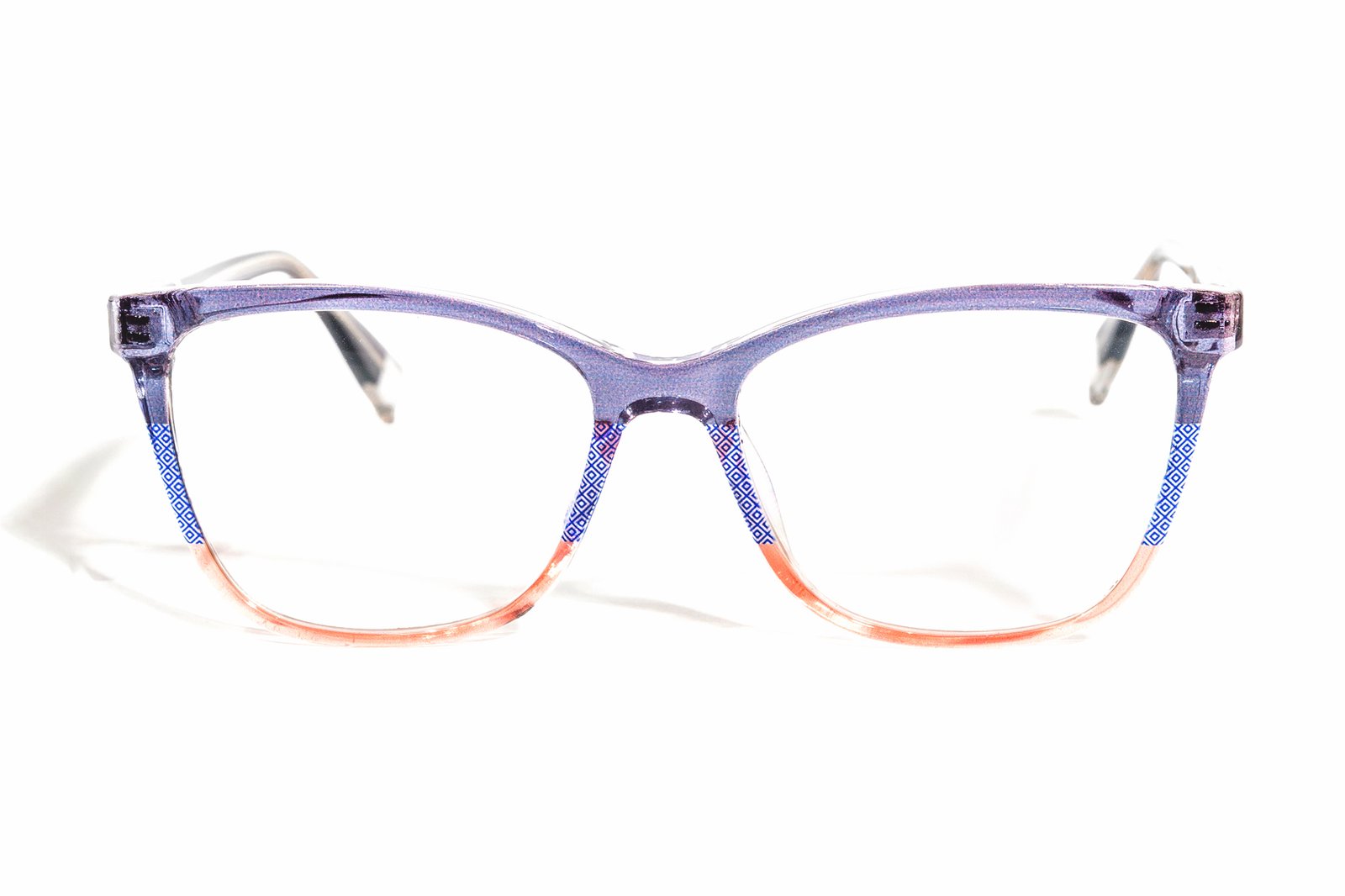 Atrevido sin ser excesivo. Gradiente púrpura a rosado, patrón geométrico que suma movimiento. Acetato transparente que deja respirar. Para quienes no se conforman con lo ordinario, pero tampoco necesitan gritar para ser escuchados.